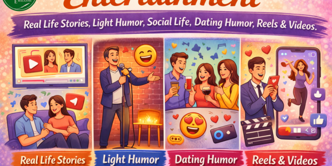 मनोरंजन केवल समय बिताने का साधन नहीं है, बल्कि यह समाज के मनोभावों और अनुभवों को व्यक्त करने का एक प्रभावशाली माध्यम भी है। हास्य और व्यंग्य के माध्यम से कई गंभीर बातें भी सहज रूप से कही जा सकती हैं। रोजमर्रा की जिंदगी में घटने वाली छोटी-छोटी घटनाएँ, सामाजिक व्यवहार, रिश्तों की उलझनें और डेटिंग के अनुभव—ये सभी विषय हास्य और मनोरंजन का हिस्सा बन सकते हैं। जब कोई लेखक इन अनुभवों को रोचक तरीके से प्रस्तुत करता है, तो पाठक न केवल मुस्कुराता है बल्कि अपने जीवन से भी जुड़ाव महसूस करता है। हमारी पत्रिका मनोरंजन को जिम्मेदारी के साथ प्रस्तुत करना चाहती है, जहाँ हास्य केवल मज़ाक तक सीमित न हो बल्कि समाज को सोचने के लिए भी प्रेरित करे। यदि आपके पास कोई रोचक घटना है, हल्का-फुल्का व्यंग्य है या जीवन की ऐसी कहानी है जो लोगों को हँसाने के साथ कुछ सोचने पर मजबूर करे, तो हम आपको लिखने के लिए आमंत्रित करते हैं। आपकी कहानी लोगों के चेहरे पर मुस्कान ला सकती है और शायद किसी के तनाव भरे दिन को हल्का बना सकती है।